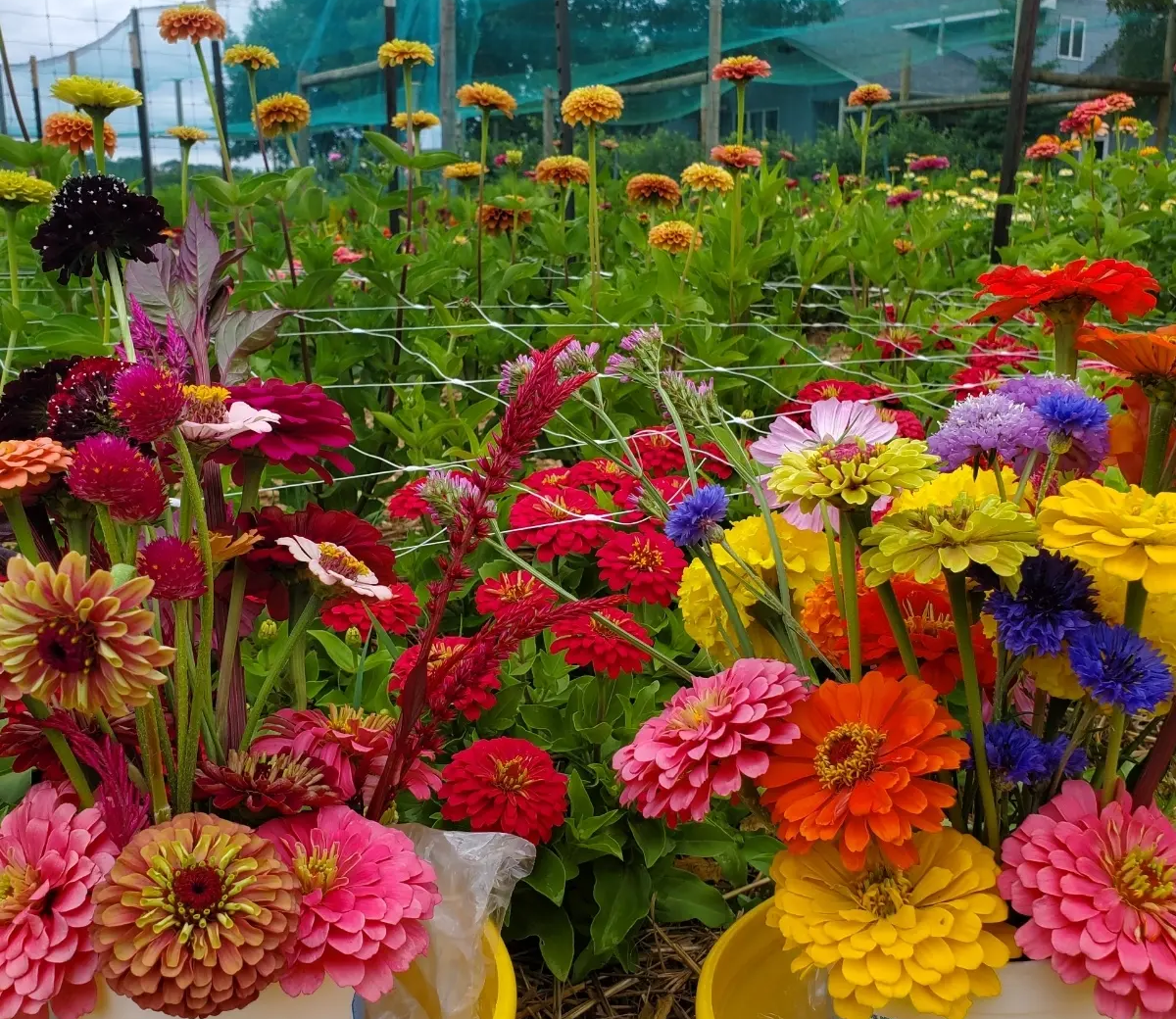 Brad's original plan was to only plant Sunflowers and Zinnias. But, you know Brad, he got a little carried away when buying the seeds. He just had to buy a dozen or so other varieties to test. The test went well, we will be doing it again. We have Celosia, Bachelor Buttons, Snapdragons, Marigolds, Zinnias, Sunflowers, and more.